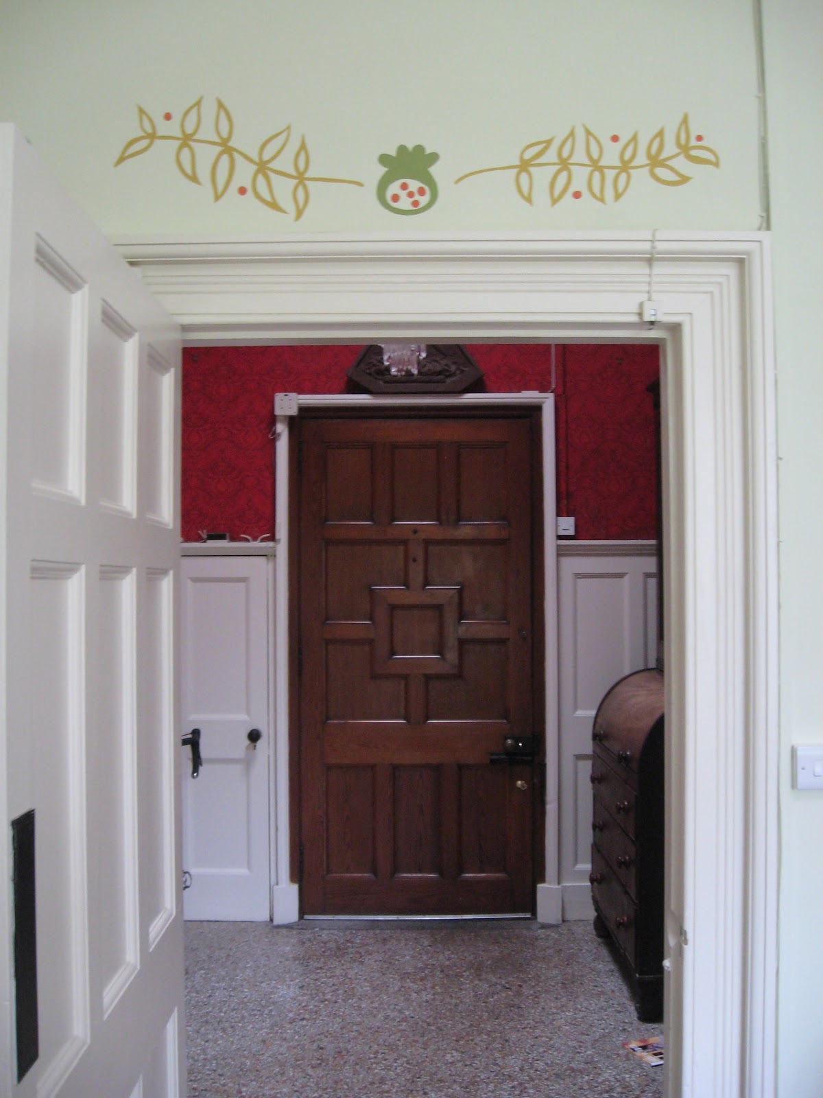 The trade-off of me being here in Ireland is that I work on the house, which fine by me! I am doing a range of tasks from organizing books to gardening to rearranging furniture to telling them what they should buy and even getting to paint some stuff. I really enjoy getting to add these mini mural/wall decorations around the house. These two are the only ones I have done so far, in addition to the liquor cabinet, but I need to re-photograph it. I would love to do this kind of thing in other people's homes. Maybe a future business idea?